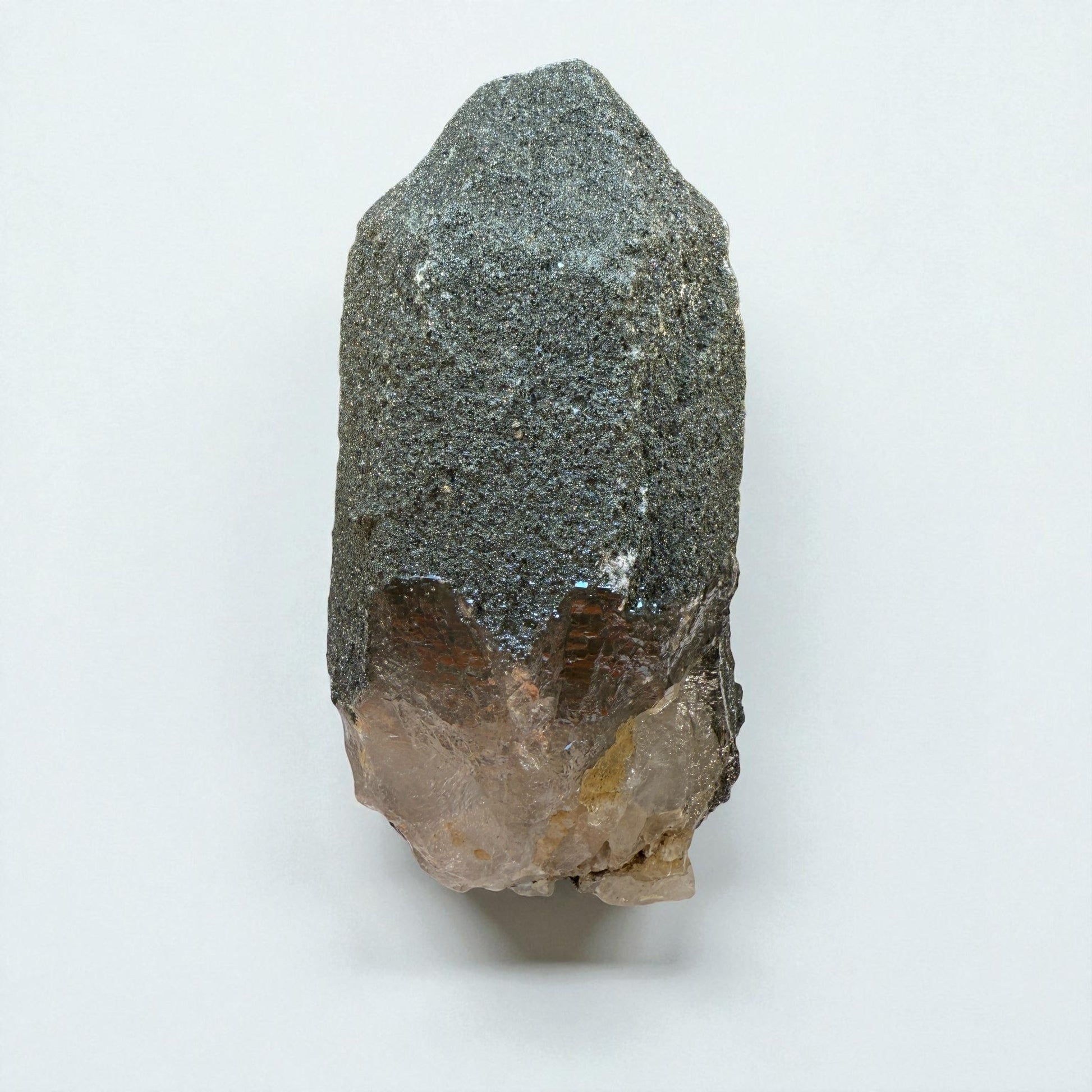 Sourced from the northern mountains of Gilgit-Baltistan, Pakistan, this piece represents the region’s alpine-style quartz occurrences known for their chlorite inclusions and surface mineralization. Its size, well-preserved structure, and uniform chlorite coverage make it an outstanding collector piece — equally suited for mineral display cabinets or natural décor settings.