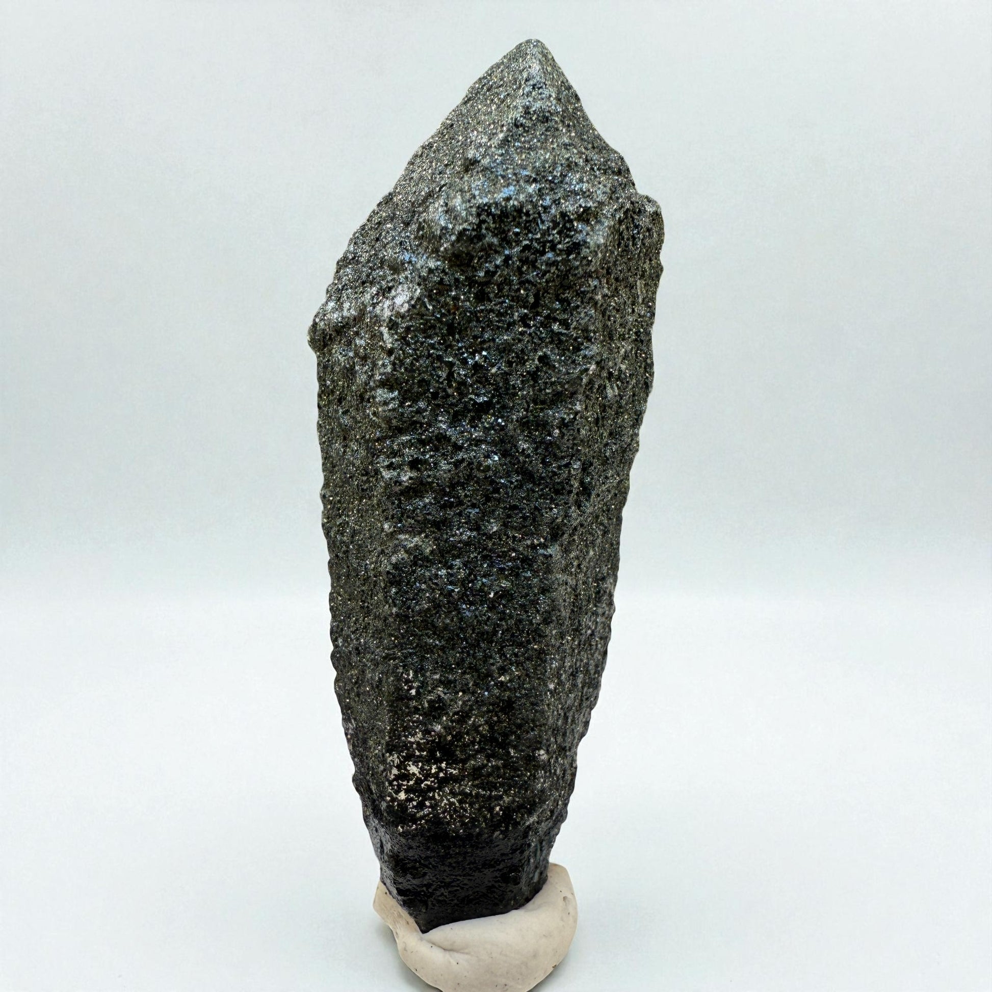 From the pegmatite zones of Gilgit-Baltistan, this striking Chlorite Quartz crystal combines bold surface character with a strong geometric form. The dark green chlorite coating enhances the crystal’s natural structure, creating a specimen that bridges beauty and mineral science. A distinctive addition for collectors of quartz and alpine minerals.