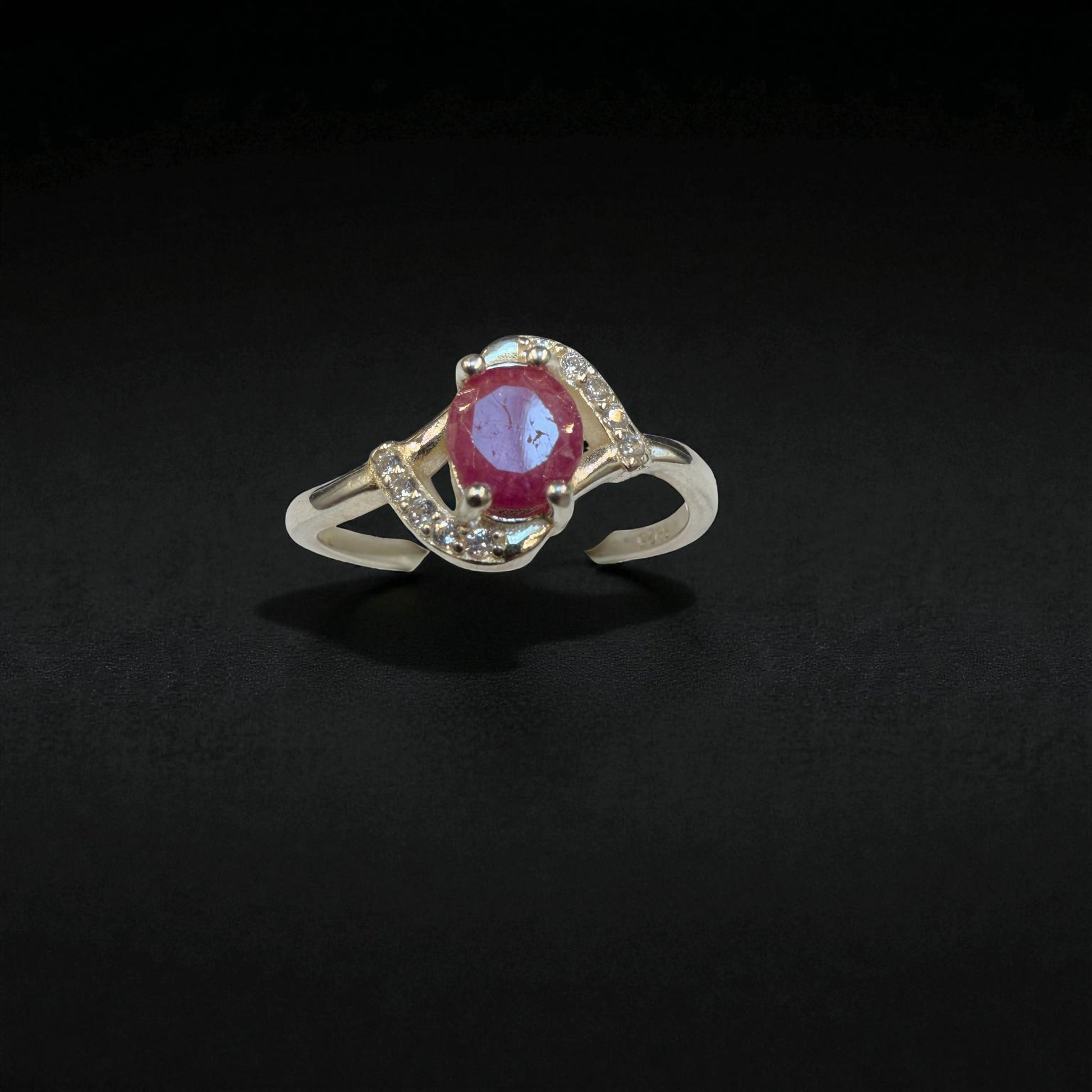 Natural Ruby Ring - Oval Cut Ruby in Silver with Sparkling quartz