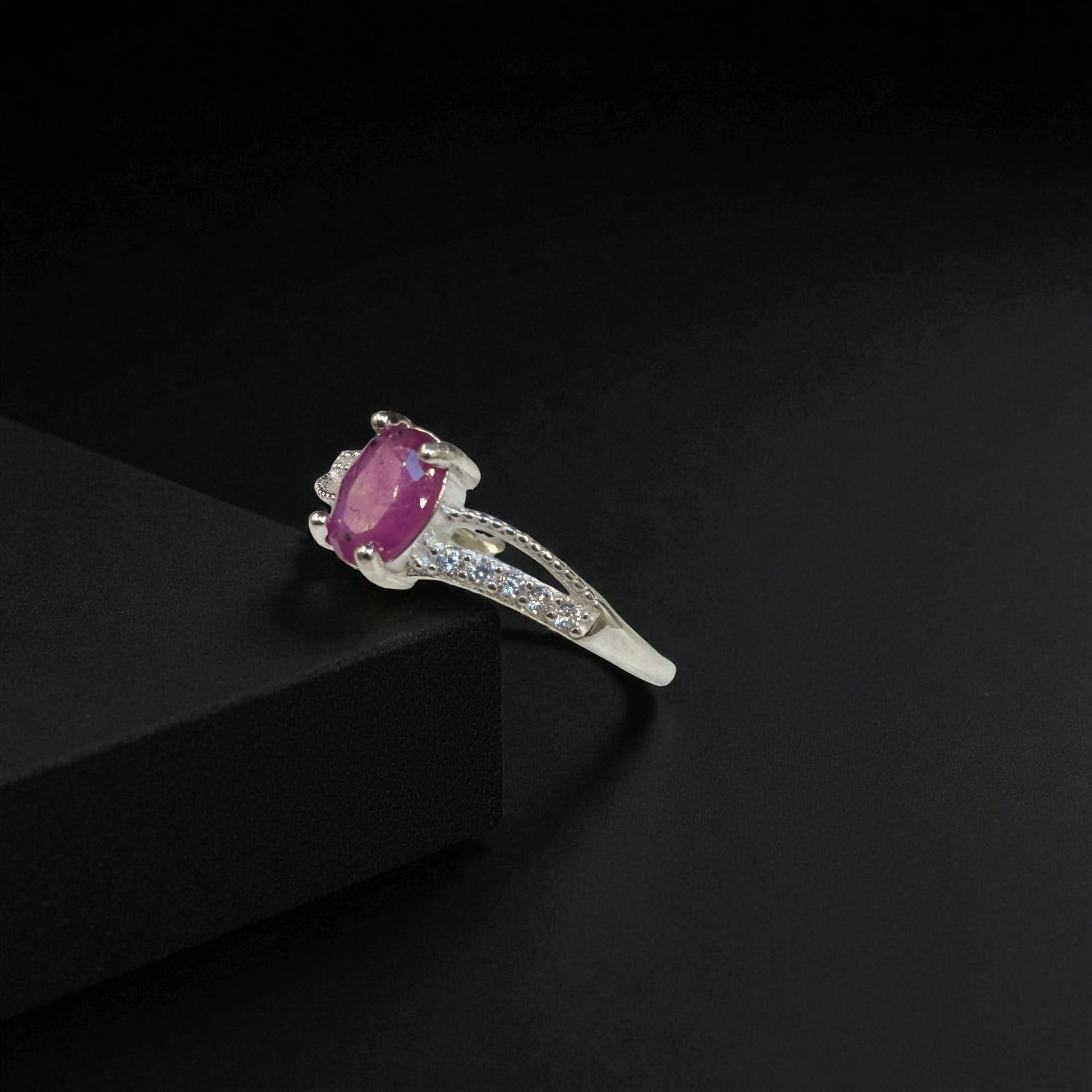 Natural Ruby Ring Oval Cut with Silver for Women